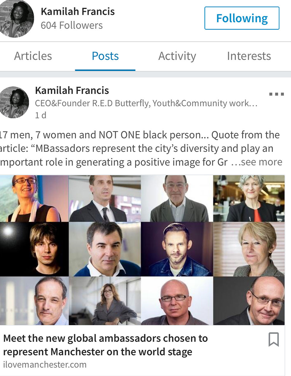 The announcement of Manchester’s ambassadors - representing diversity?! Does this look diverse to you?